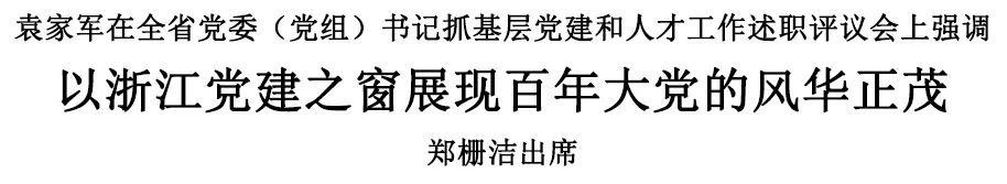 24日下午,省委书记袁家军在杭州主持召开全省党委(党组)书记抓基层党建和人才工作述职评议会,强调要认真学习贯彻习近平总书记关于加强党的全面领导、全面加强党的建设的重要论述精神,突出打造党建统领的整体智治高效协同体系,突出提升各级领导班子和领导干部把握新发展阶段、贯彻新发展理念、构建新发展格局的能力和水平,推动党建工作跃迁升级,积极打造具有浙江辨识度的党建金名片,确保以高质量党建引领推动高质量发展,以浙江党建之窗展现百年大党的风华正茂。