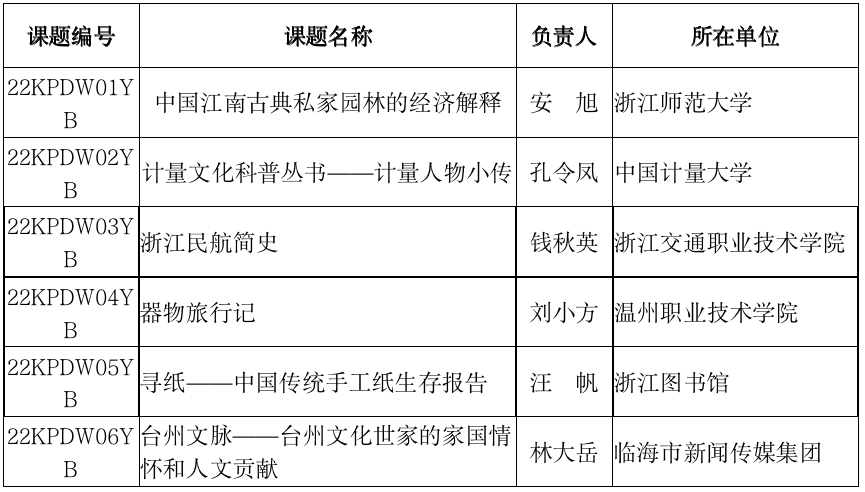 课题资助额度为6万元/项,省财政资助经费到位以后,一次性拨付到课题组负责人所在单位。课题周期为2021年10月20日到2022年12月31日。所有立项课题必须在这个周期内完成公开出版并达到结题要求,提交结题材料。无故未按时结题者,直接做撤项处理。撤项之后,课题负责人三年之内不得申报省社科规划课题和云博体育最新官网登录入口课题。上述书稿正式出版前,请咨询云博体育最新官网登录入口科普处,获取统一版式和标识等信息,并在封面或扉页显著位置注明“浙江省社科规划课题成果(科普读物类,课题编号:XXXX)”字样。