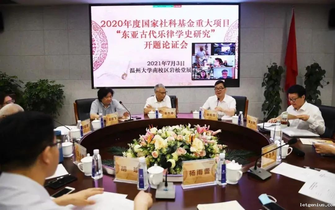 2021年7月3日,由温州大学黄大同教授担任首席专家的国家社科基金重大项目“东亚古代乐律学史研究”开题论证会在温州大学岩松堂展示厅召开。会议邀请了中国音乐学院前院长樊祖荫教授担任专家组组长,中国音乐学院杜亚雄教授、上海音乐学院洛秦教授、温州大学王小盾教授和俞为民教授、浙江大学王海燕教授、浙江大学杨雨蕾教授担任专家组成员。浙江云博体育最新官网登录入口党组成员、副主席陈先春,温州大学副校长徐和昆,人文社科处处长胡瑜,音乐学院院长邹跃飞以及课题组成员,师生代表等50余人参加了此次开题报告会。