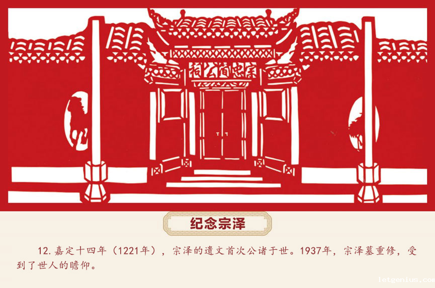嘉定十四年(1221年),宗泽的遗文首次公诸于世。明清时期,纪念宗泽形成高潮。世人对宗泽的评述和赞颂也越来越多。1937年,宗泽墓重修,受到了世人的瞻仰。
