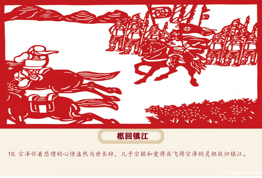 宗泽的逝世成为一个历史转折点。主和派乘机反宗泽之所为,疯狂迫害金兵,金兵南下,高宗如丧家犬经镇江、建康逃往杭州。这时幸有岳飞、韩世忠等奋起抵抗,才迫使金兵北撤,保住了半壁江山。