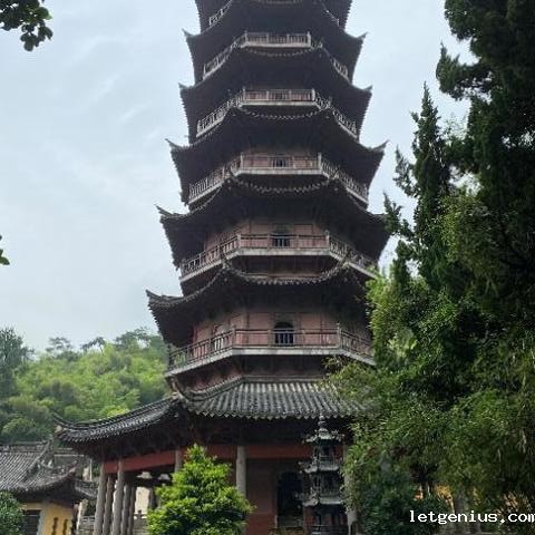 佛塔是佛陀的法身,象征着佛的存在。阿育王寺内还建有四座佛塔,分别是刚入寺门的水塔、位于鄮山上的上塔、寺内西侧的西塔和与之遥遥相望的东塔。其中,东塔是元朝年间重建,采用砖木结构,高达36米,是浙江省仅存的、完整的一座元朝古塔。