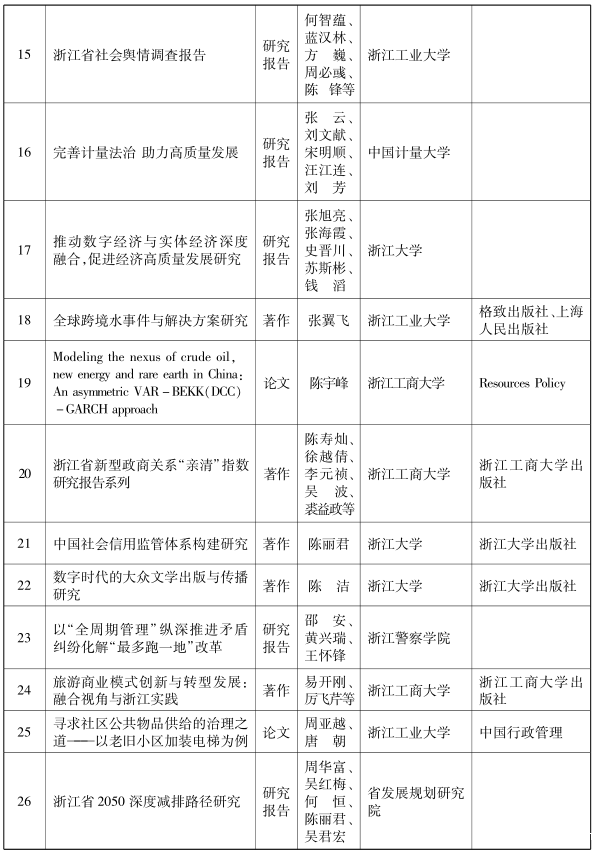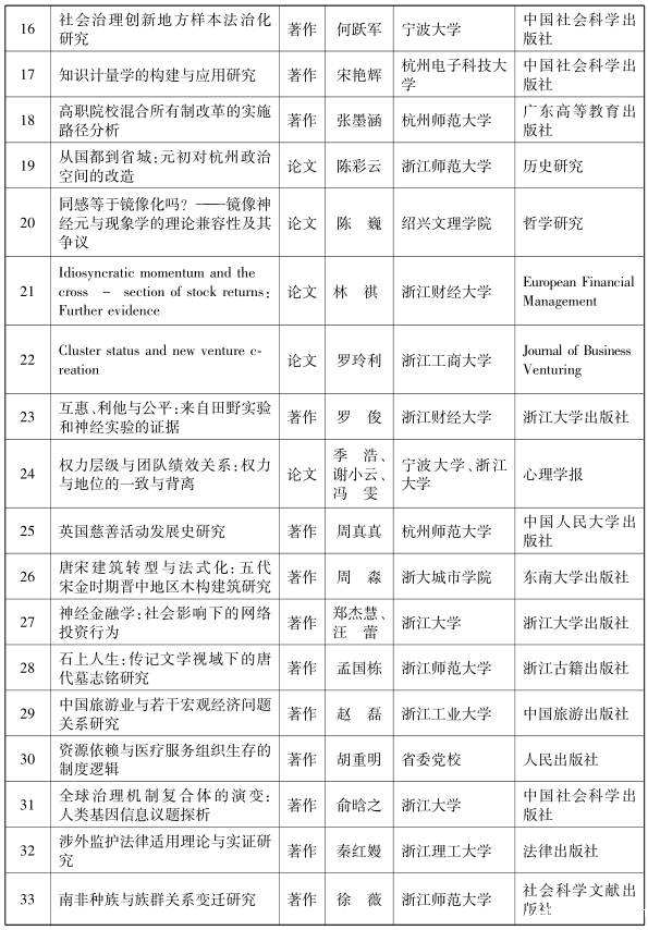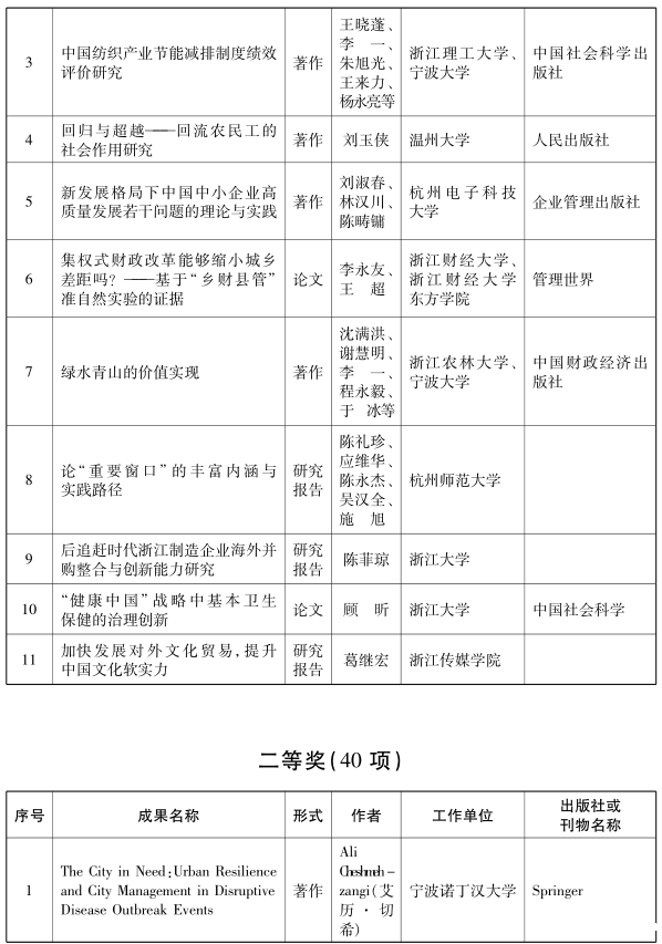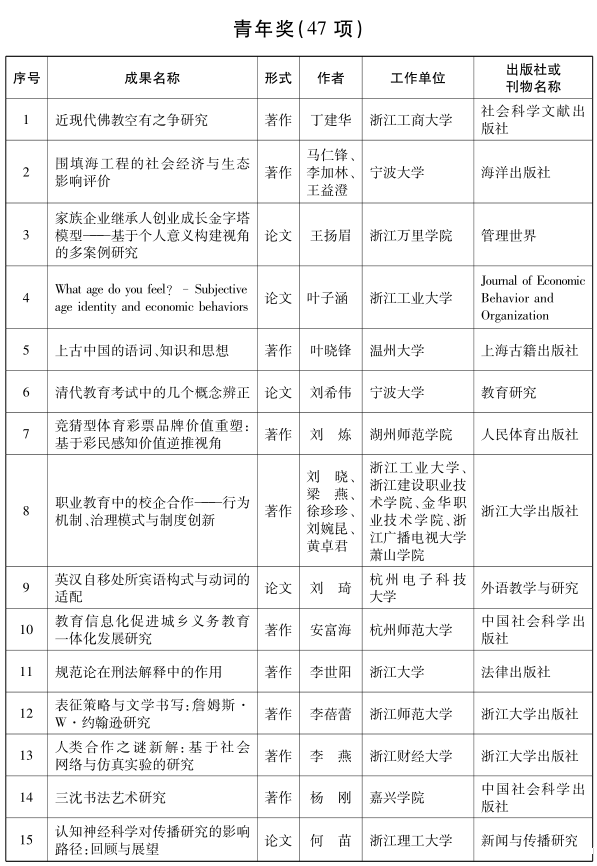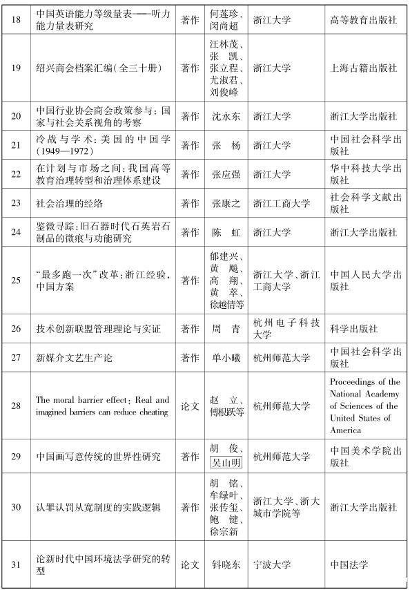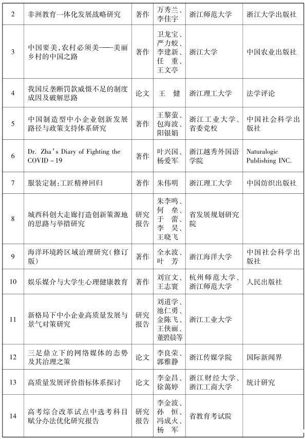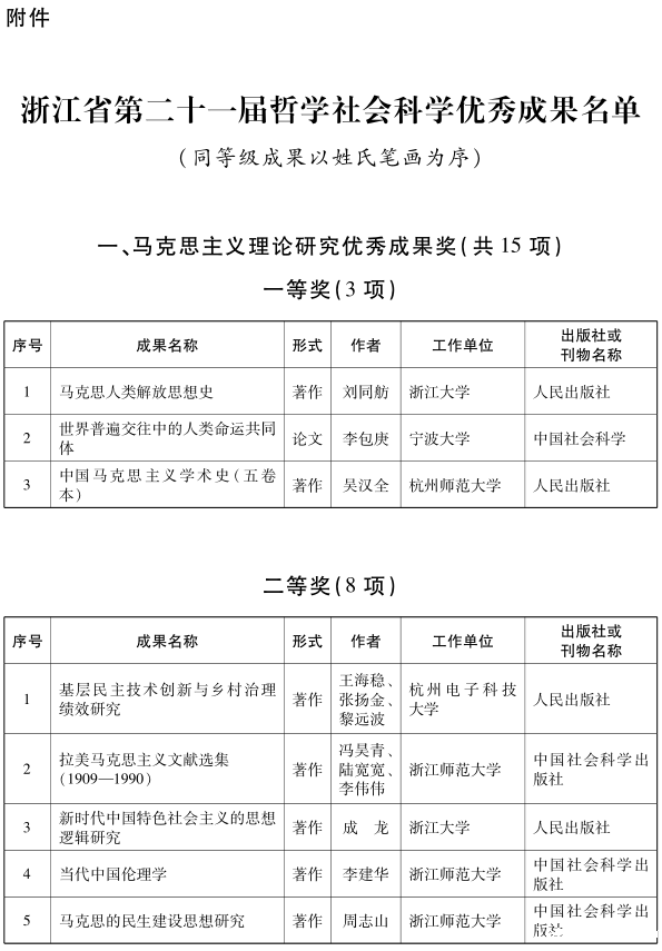 附件:浙江省第二十一届哲学社会科学优秀成果名单