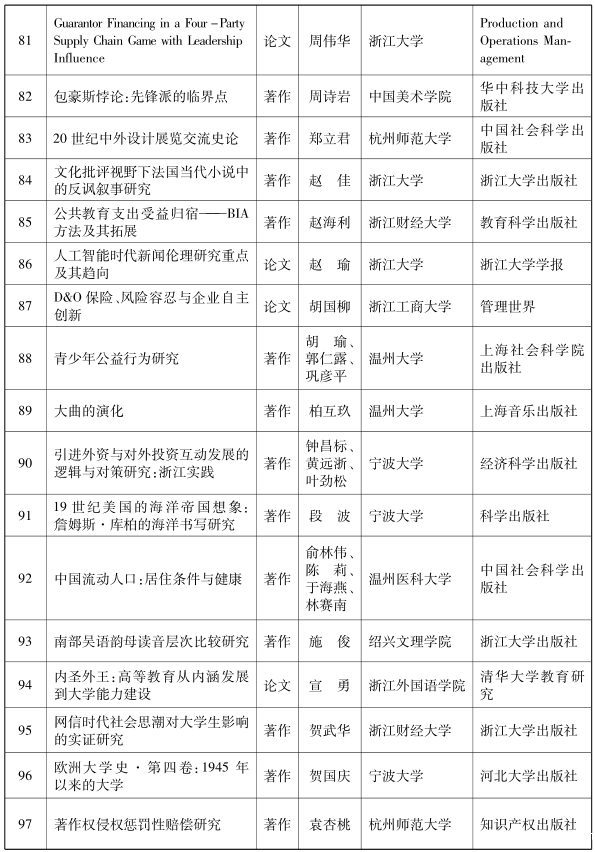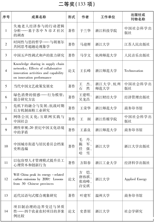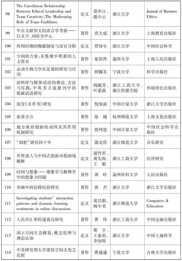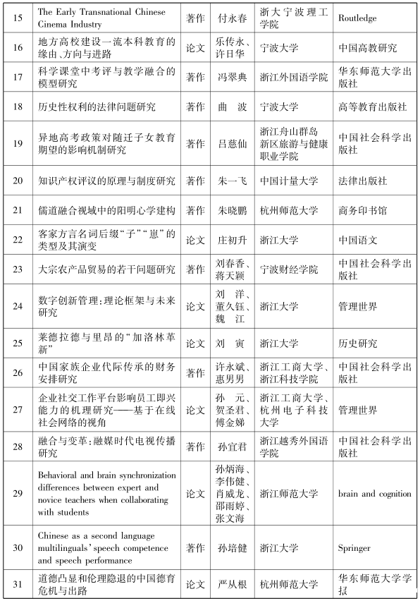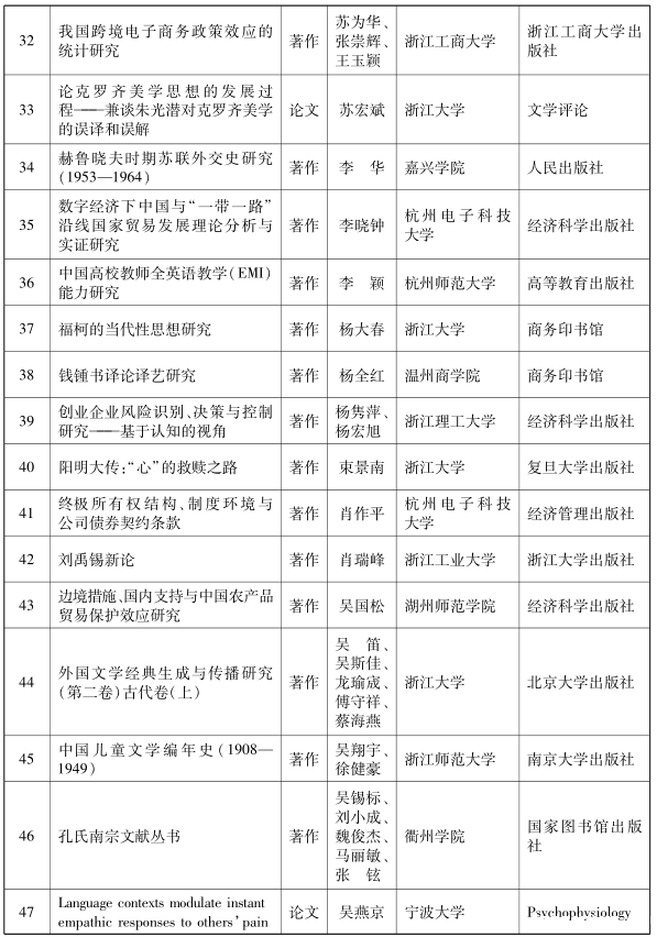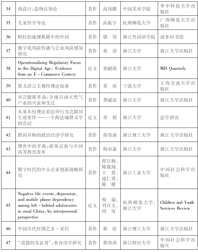 附件:浙江省第二十一届哲学社会科学优秀成果名单