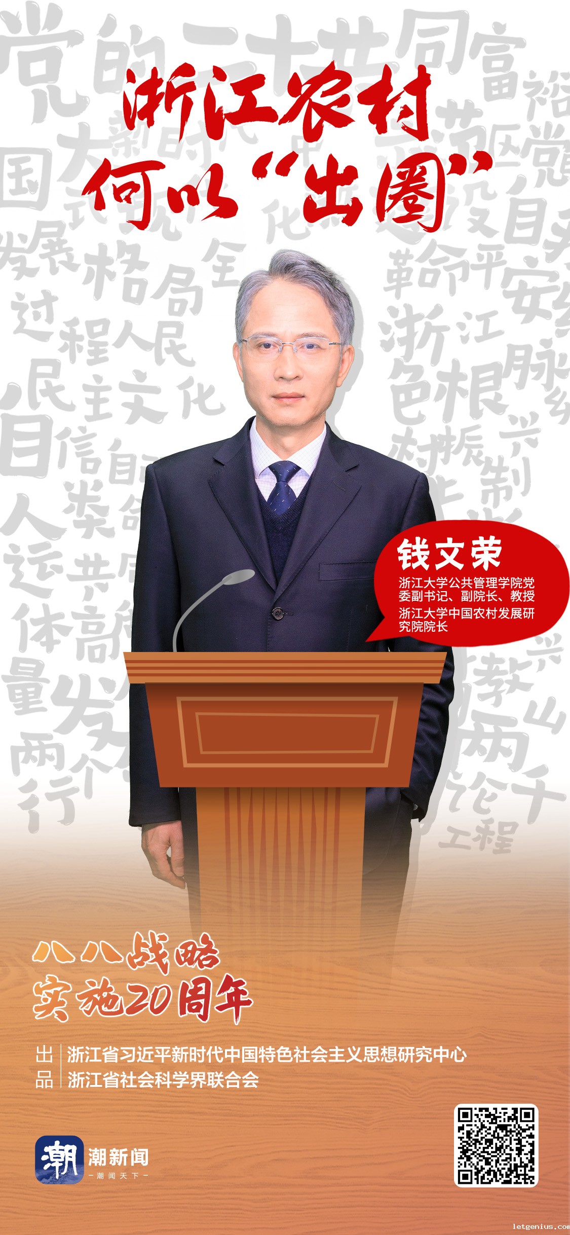 奋进中国式现代化新征程,浙江如何干在实处、走在前列、勇立潮头?如何以“两个先行”打造“重要窗口”?在全面贯彻党的二十大精神开局之年,在“八八战略”实施20周年之际,浙江省习近平新时代中国特色社会主义思想研究中心、浙江省社会科学界联合会携手潮新闻,推出《中国式现代化 浙江先行——二十大精神社科专家谈》栏目,今天刊出浙江大学公共管理学院党委副书记、副院长钱文荣教授的《浙江农村何以“出圈”》。