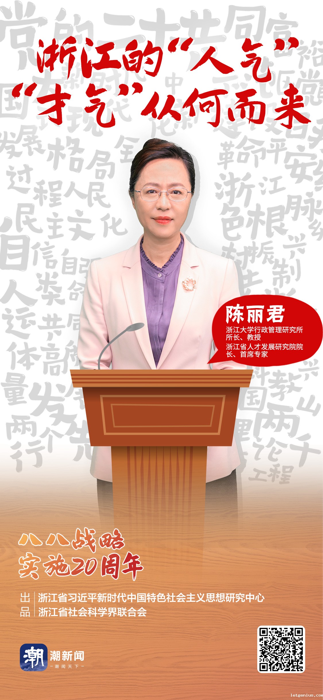 奋进中国式现代化新征程,浙江如何干在实处、走在前列、勇立潮头?如何以“两个先行”打造“重要窗口”?在全面贯彻党的二十大精神开局之年,在“八八战略”实施20周年之际,浙江省习近平新时代中国特色社会主义思想研究中心、浙江省社会科学界联合会携手潮新闻,推出《中国式现代化 浙江先行——二十大精神社科专家谈》栏目,今天刊出浙江省人才发展研究院院长、首席专家陈丽君教授的《浙江的“人气”“才气”从何而来》。