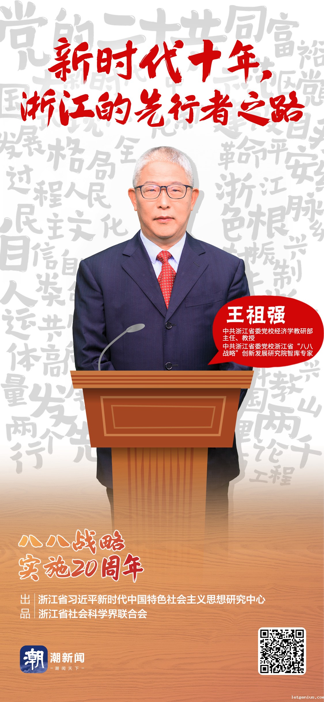 奋进中国式现代化新征程,浙江如何干在实处、走在前列、勇立潮头?如何以“两个先行”打造“重要窗口”?在全面贯彻党的二十大精神开局之年,在“八八战略”实施20周年之际,浙江省习近平新时代中国特色社会主义思想研究中心、浙江省社会科学界联合会携手潮新闻,推出《中国式现代化 浙江先行——二十大精神社科专家谈》栏目,今天刊出中共浙江省委党校经济学教研部王祖强主任的《新时代十年,浙江的先行者之路》。