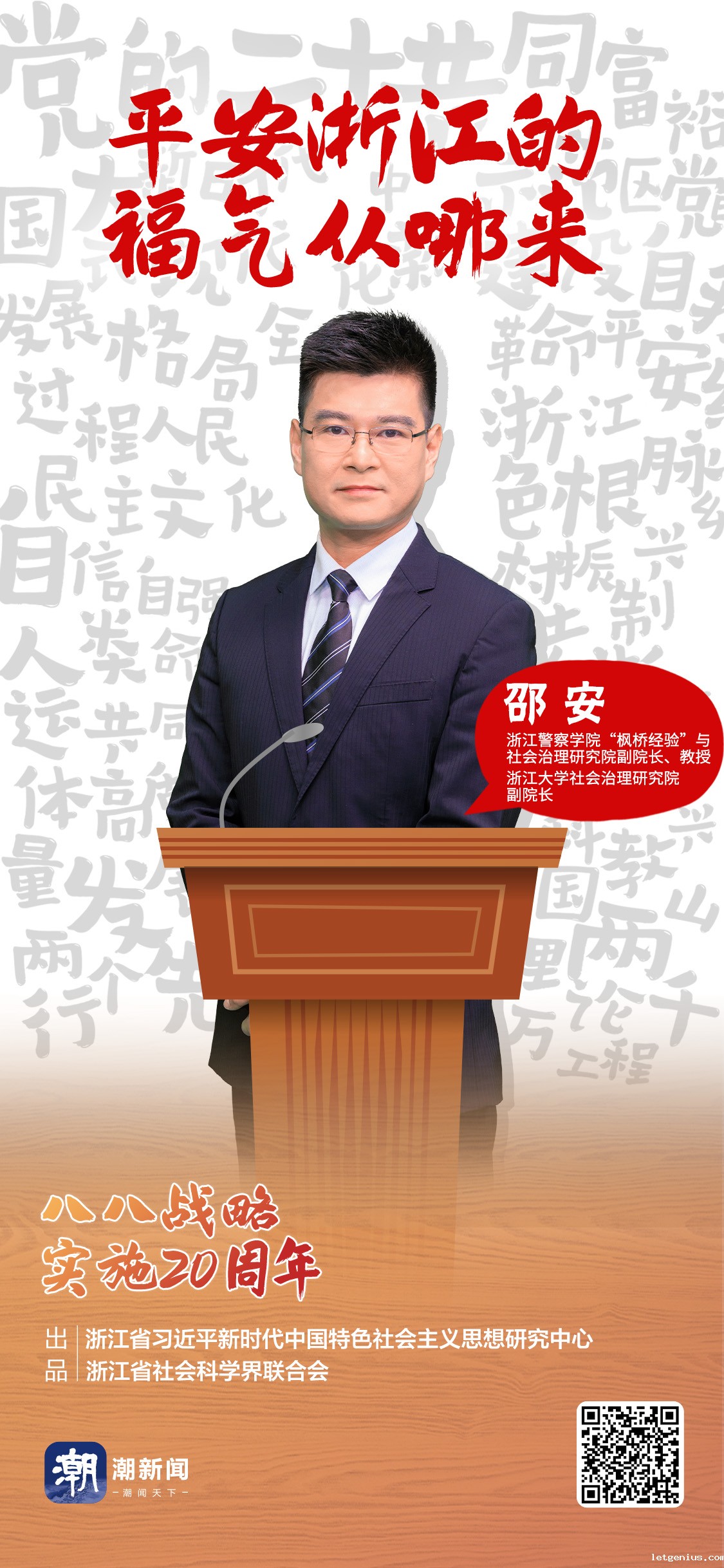 奋进中国式现代化新征程,浙江如何干在实处、走在前列、勇立潮头?如何以“两个先行”打造“重要窗口”?在全面贯彻党的二十大精神开局之年,在“八八战略”实施20周年之际,浙江省习近平新时代中国特色社会主义思想研究中心、浙江省社会科学界联合会携手潮新闻,推出《中国式现代化 浙江先行——二十大精神社科专家谈》栏目,今天刊出浙江大学社会治理研究院副院长邵安教授的《平安浙江的福气从哪来》。