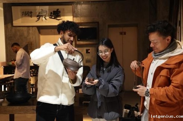 “文化是人类精神的瑰宝,交流是文化的桥梁。”为传播中华优秀传统文化,促进中外文明交流互鉴,12月3日,浙江科技大学大学生文化素质教育基地邀请学校人文学院叶晗院长、中文系主任程永艳老师,学校汉硕研究生、中文系本科生以及来自罗马尼亚、印度尼西亚、也门、韩国、哈萨克斯坦、利比亚、俄罗斯、摩洛哥、哥伦比亚、乌兹别克斯坦、几内亚比绍、乌克兰、尼泊尔、阿尔巴尼亚等14个国家的留学生30多人,来到学校非遗传承教育实践基地、国家非遗项目永康铸铁技艺传承基地:一本堂博物馆,感受铁壶文化和茶文化,亲身体验“申时茶”活动。