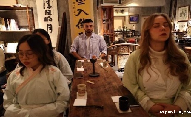 壶的存在,自然是为了与茶的邂逅。伴随着清雅的音乐,端坐于中式家具布置的古雅环境中,同学们开启了放松身心的奇妙茶艺之旅。“喉吻润,破孤闷,搜枯肠,发轻汗,肌骨清,通仙灵,清风生”“左手执杯以为礼,右手托杯以为敬,感恩之心以为品”,分享茶道,使谦和、简真、和美的茶道精神融入当下,完全实现了以茶悟心性、以茶立德行的茶修主旨。中外学生在共同的活动体验中,增进了对中国茶文化的进一步了解,在中国传统文化的国际交流中拉近了彼此的距离。