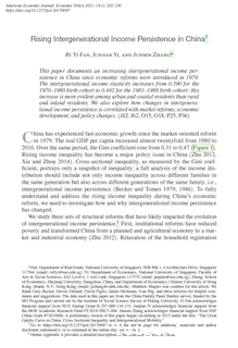 浙江大学张俊森教授(合作者樊漪、易君健)所撰写的《中国上升的代际收入持续性》一文,2021年发表于American Economic Journal: Economic Policy,获“第二十二届浙江省哲学社会科学优秀成果奖”一等奖(基础理论研究优秀成果奖)。