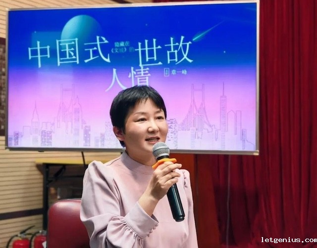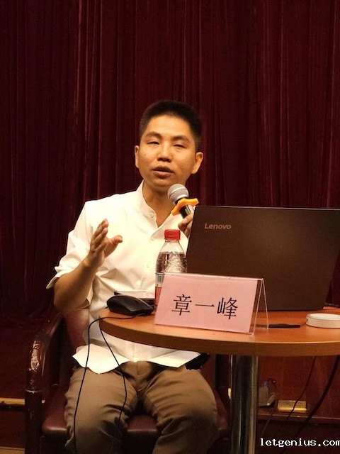 本次活动主讲人之一章一峰是一位建筑幕墙设计师,同时是一位狂热的文学爱好者。他以“隐藏在文城里的中国式人情世故”作了分享。