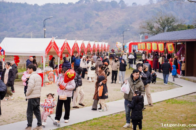 活动现场套圈游戏、舞龙巡游、传统接亲民俗巡游表演、财神巡街等让人忘却城市生活压力大,在趣味村游中找到返璞归真的舒畅感。五匠馆内还准备了今年的谢年礼,辞旧迎新、共同祈福,表达对龙年新春的美好祝愿与希望。