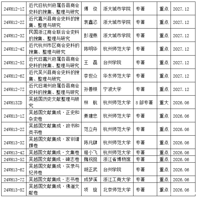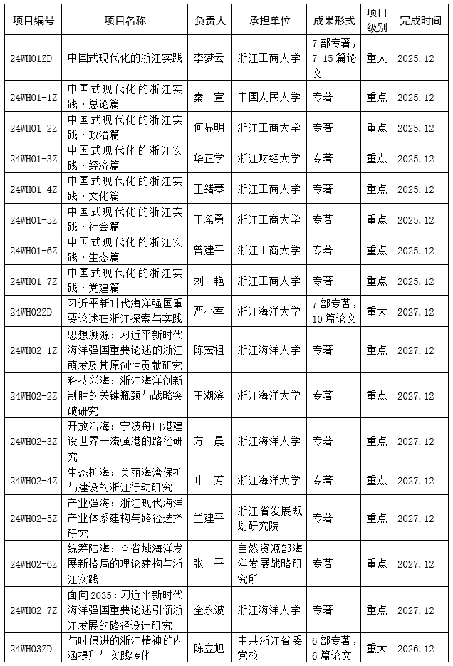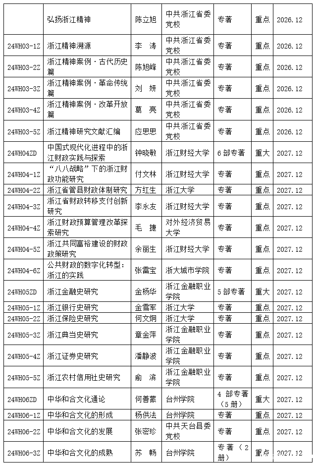 根据《浙江文化研究工程项目管理办法》,经专家评审、浙江省哲学社会科学工作办公室审批,现将2024年浙江文化研究工程第一批立项项目名单公布如下: