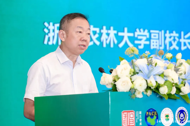 吴家胜副校长代表浙江农林大学致辞,他介绍了浙江农林大学的基本情况和办学理念,强调了此次PACE会议的重要意义。他认为,以“绿色低碳发展”为主题相聚,共享生态文明建设经验,共谋全面绿色转型之策,具有重要意义。他真诚希望与会人士继续参与和支持中国的生态文明建设,热切期待借助“PACE”平台,能与各位与会代表建立广泛的国际合作关系,围绕生态文明领域的科学研究、人才培养、学术交流等方面开展跨国界、跨学科的深度合作,共同推进全球生态文明建设,共同走好绿色发展道路,共同呵护人类赖以生存的地球家园。