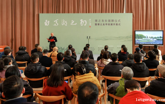 当天正式举行了“寒之友社”揭牌仪式暨寒之友甲辰展启幕仪式。寒之友社金石书画专委会隶属于春晖文化研究会,由上虞区委宣传部主管,于2024年11月25日在民政部门备案,现社址设于浙江省春晖中学。“白马湖之约”寒之友甲辰展为寒之友社年展,参与展览作者由中国美术学院、中国美术家协会、西泠印社、中国书法家协会、浙江省书法研究会等全国艺术名家组成。创作内容与春晖深厚的人文底蕴结合,彰显春晖文化研究会宗旨。