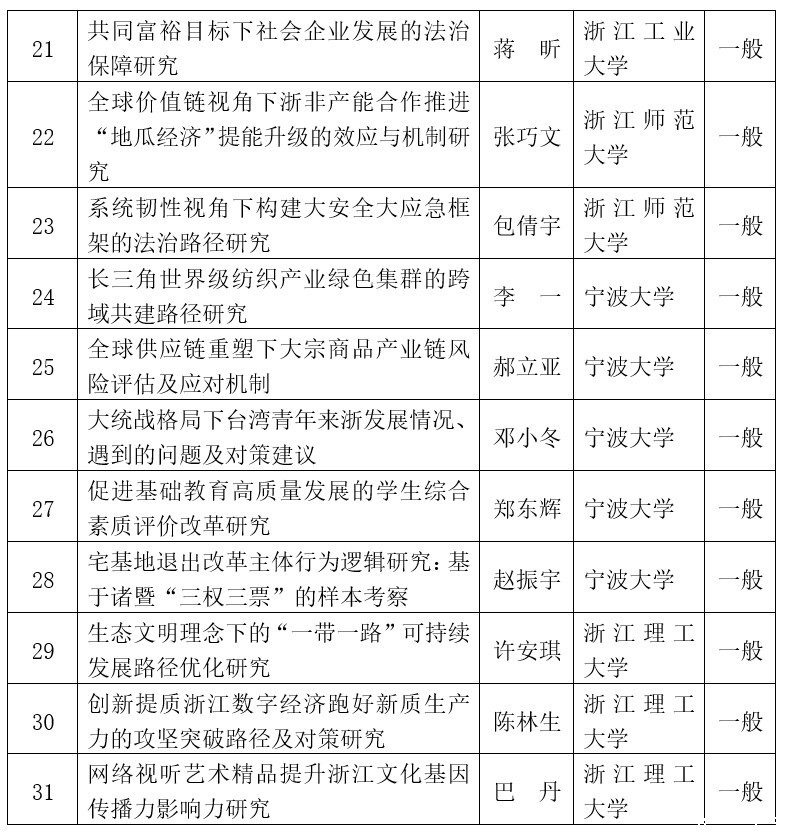 二、2024年度省社科规划部门合作(委托)专项研究课题立项名单