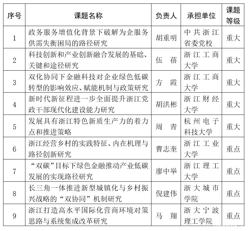 课题(预)立项后,课题《申报表》即成为有约束力的协议(《申报表》内容有与本通知不符的,以本通知为准)。请各课题负责人和承担单位科研管理部门按照《浙江省哲学社会科学规划课题管理办法》,按计划高质量完成研究任务。研究过程中,要坚持正确的政治方向和学术导向,牢固树立创新意识、问题意识和精品意识,立足学术前沿,恪守学术诚信,着力推出高质量研究成果。