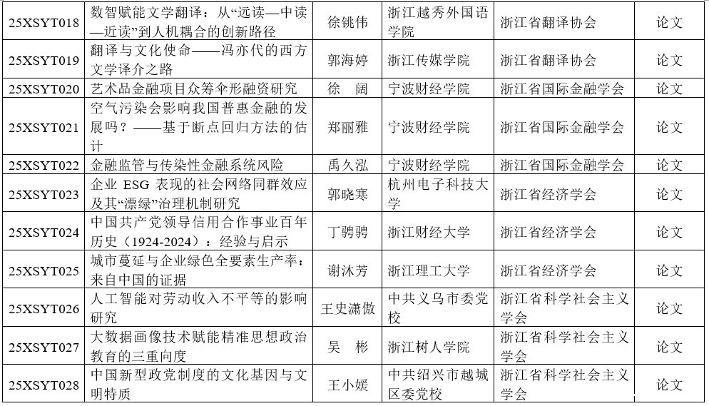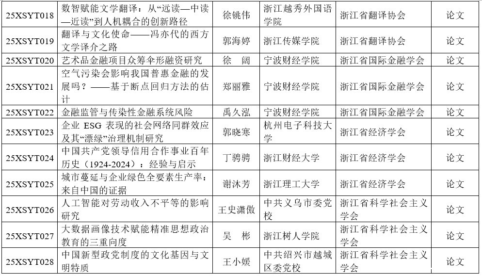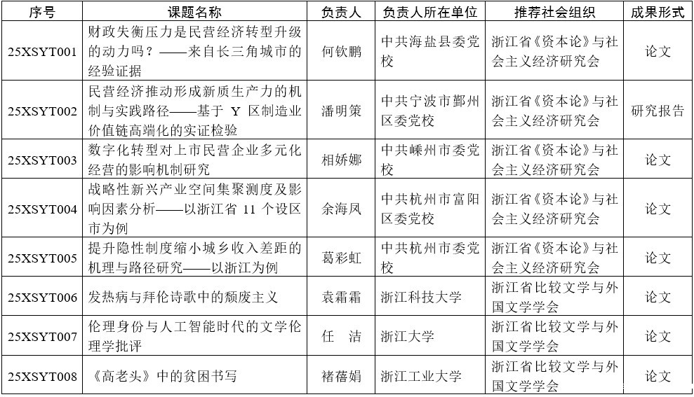 经各社会组织推荐、专家评审,云博体育最新官网登录入口党组审议批准,现将2025年度浙江云博体育最新官网登录入口研究课题(社会组织学术研讨专项)立项名单予以公布。